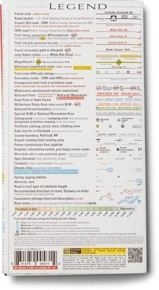 Explore the roads and trails of the majestic Canyon Country—including Canyonlands National Park—with the detailed Moab West Trails recreation topo map for hikers, mountain bikers and OHVers.