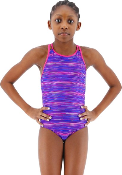 Make sure she feels like a superstar in the water with the girls' TYR Olivia one-piece swimsuit. Engineered for growing swimmers, it boasts a flexible stretch, 360° mobility and a tug-free fit.