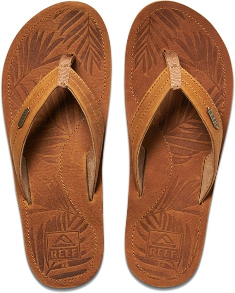 - Premium leather footbed covers with oil emboss detailing textured in a palm tree design