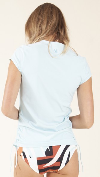 [This review was collected as part of a promotion.] I really like this silhouette on the model, but the neckline just doesn’t look good on me — I have a round face, narrow shoulders, and a big bust. I wonder if they look better on small-chested gals, which is too bad because otherwise, Carve doesn’t have another short-sleeve rashguard option. The long-sleeve rashguard is fantastic, though!