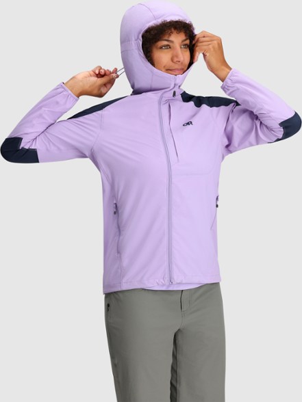 Climb, hike, run and bike—the women's Outdoor Research Ferrosi Hoodie does everything that you do. An updated hood fits over a climbing helmet or stows away, and the fabric offers improved stretch.