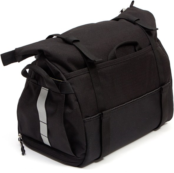 This bag is so cool! Let me rave about how versatile this bag is. Empty and on the bike it compresses down to a low profile - I even tied my helmet to the top with the compression straps when I got to the store. At the store I picked up a bit more than I thought - but it all fit in the bag! I store my big U-lock (disassembled) in the handy "under pocket". I was a little worried the stuff on top would make it hard to shove the lock back in - but I was wrong. Outside of buying too much, I appreciate all the interior pockets for storing my regular repair kit stuff and my snacks. I'm a little worried my partner may repurpose it to tote around shop tools. He used it to bring back paint from the store the other day. I may need to get another. I like the 4 point attachment straps - they make the process of getting the bag on and off the bike simple and easy. This bag is a winner.