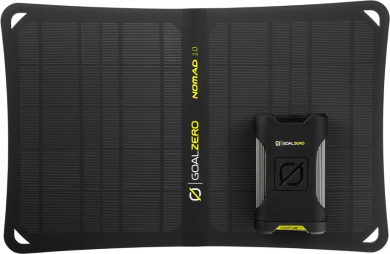 Harness the power of the sun and keep multiple devices charged on your off-grid adventures with the Goal Zero Venture 35 Solar Kit, which pairs a Venture 35 power bank and a Nomad 10 solar panel.