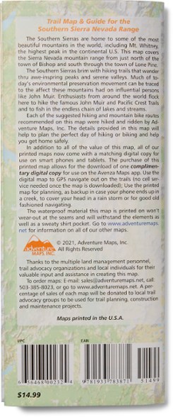 Shop similar products- Covers Pine Creek south through the Cottonwood Lakes; towns of Bishop and Lone Pine; southern Sierra Nevada mountain range; John Muir wilderness and Mount Whitney