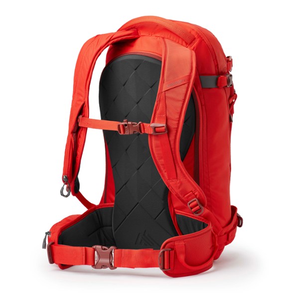 This is a well thought out pack for snowboarding and skiing. It can carry skis in diagonal or A frame or a board. The hydration tube is insulated and did not freeze over on me. Avi pocket and I like that the main pocket can be accessed even when your board is strapped on. Very comfortable and low profile enough to wear while lift riding. I only docked it one star was because it does have a weird "squeek" between the stiffening material and cover on the back panel. Most of the time I don't notice it. First Gregory pack I've owned (mostly Ospery or Mystery Ranch) and I'm impressed. B