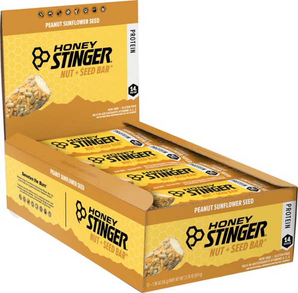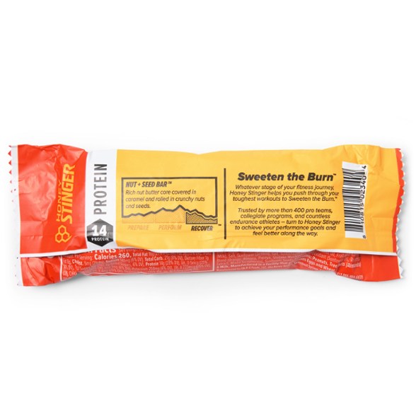 With a rich nut-butter core covered in caramel and rolled in crunchy nuts and seeds, the Honey Stinger Protein Nut + Seed bar is a delicious way to fuel your adventure.