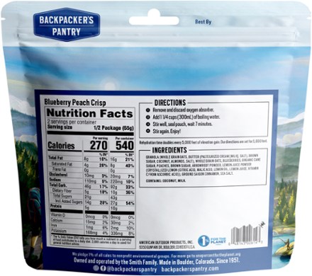 Inspired by traditional recipes from the South, this Backpacker's Pantry Blueberry Peach Crisp treats you to sweet blueberries, juicy peaches and a buttery, crisp finish with a hint of cinnamon.