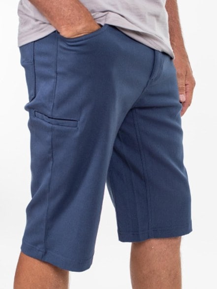 I specifically purchased these because REI had them on sale and they were listed at 98% cotton. When I got them, it was obvious they were not mostly cotton and the fabric tag reads "60% Polyester / 35% Cotton / 5% Spandex." The medium fits a 5'9" 165lbs 32 waist male fine but I doubt they will breathe like cotton shorts do.