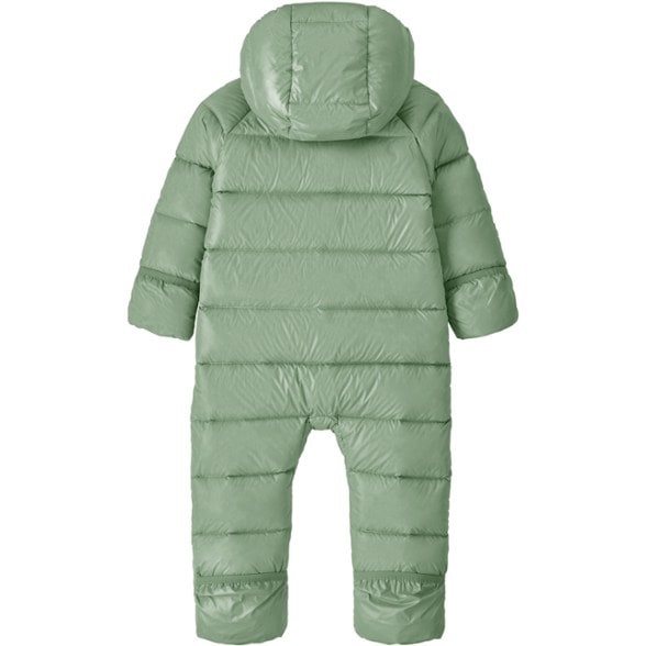 - Internal smocked elastic at the sleeve and leg openings creates a snug fit; fold-over mitts and foot covers keep out the cold