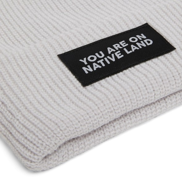 Love the feel and weight of this beanie. The color is even better in person. Message is incredibly important as well “You are on Native land” which is coming from the perspective of indigenous peoples, not the perspective of the person wearing the hat.