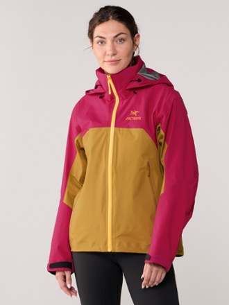 This lightweight Arc'teryx jacket is a durable choice for alpine outings. Waterproof/breathable 3-layer fabric and a helmet-compatible hood shrug off rain. Pit zips vent heat when you're on the move.