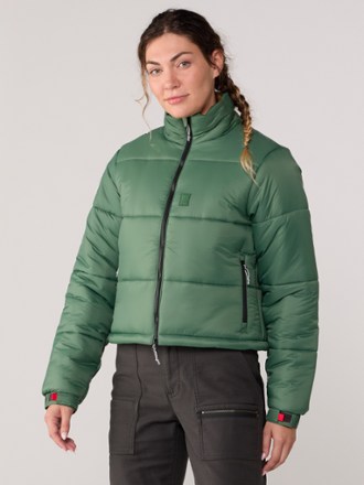 Made with a 100% recycled nylon shell and an organic C0 water-resistant finish, the women's Topo Designs Mountain Puffer insulated jacket is warm enough for everyday and high-alpine adventures.