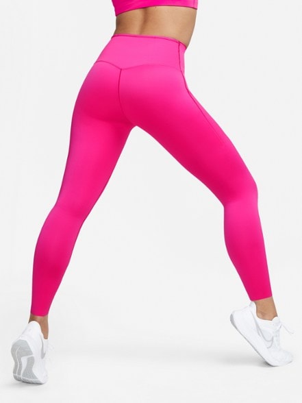 Push yourself during your workout with the women's Nike Go High Rise 7/8 tights. These pants offer that just-right balance of support and comfort—and plenty of pockets to store your small essentials.