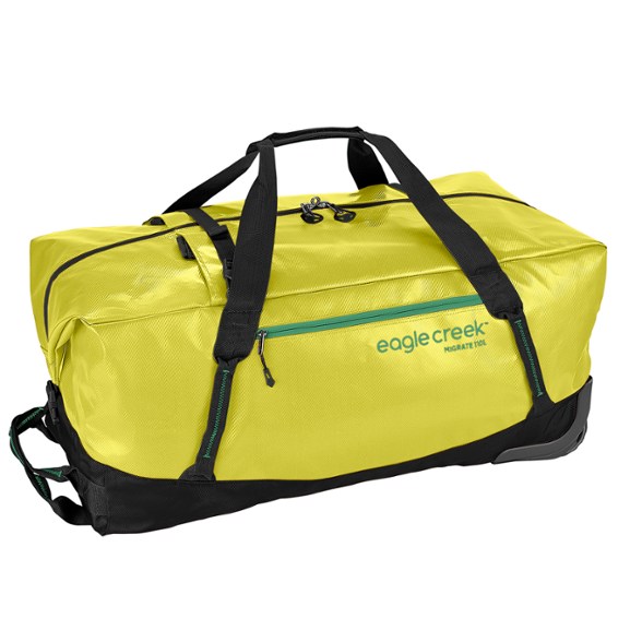 Rolling by your side or strapped to your back, the 110-liter Eagle Creek Migrate wheeled duffel fits all your travel gear. Plus, its heavy-duty, easy-to-clean materials hold up over the long haul.