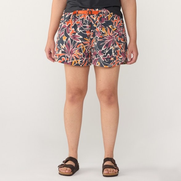 I received the shorts from rei trail blazers in exchange for an honest review. The shorts are cute and will be great for paddle boarding. They did not work so well for hiking. The material is stiff and they are a little too short for scrambling up rocks. The side pockets are nice and deep and the print is colorful and fun. I received a size small, it fits in the waist but is baggie every where else.