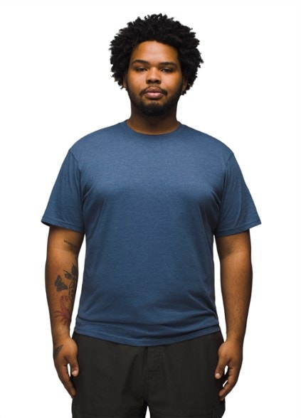 The men's prAna Crew T-shirt is cut from a lightweight jersey fabric that's ideal for layering, making it a crew-neck staple in your closet.