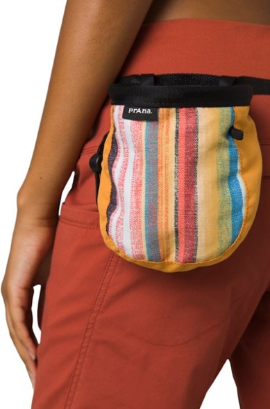 Built with an adjustable drawcord closure that seals the chalk inside, the prAna Graphic chalk bag has an included belt, elastic brush holder and double belt loops for added stability.