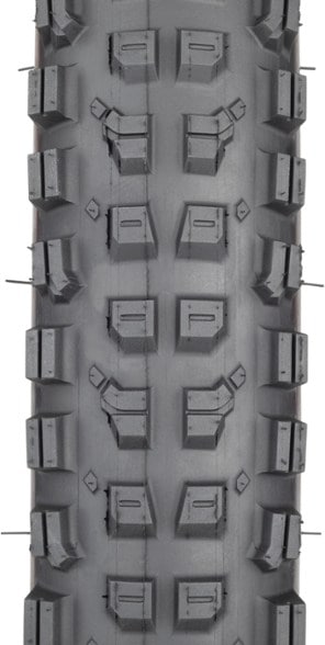 - Dual-row center tread is composed of aggressive beveled knobs; well-spaced siped knobs dig into loose corners