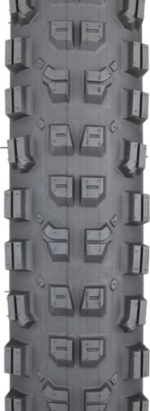 - Dual-row center tread is composed of aggressive beveled knobs; well-spaced siped knobs dig into loose corners