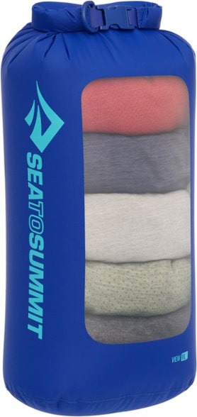 Great for backpacking or paddling trips, the 8-liter Sea to Summit Lightweight View dry bag has a clear window that lets you keep track of your items—so you can keep your gear dry and organized.