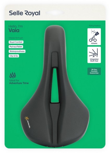 Suitable for leisurely rides on roads and trails, the women's Selle Royal Vaia Athletic saddle features durable RoyalGel™ padding for great support for even your longest rides.