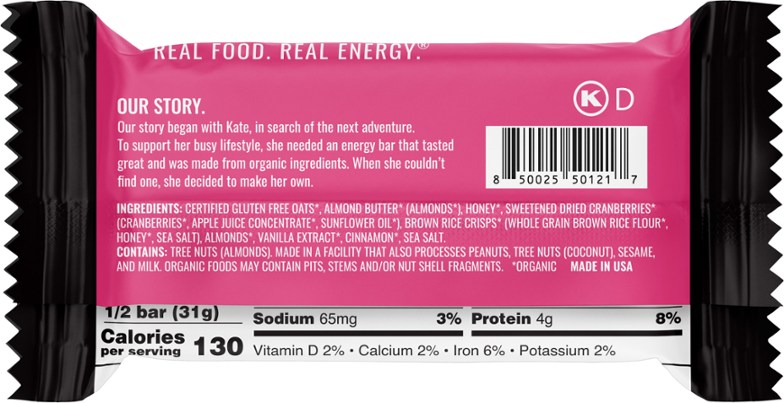 Kate's Real Food Oatmeal Cranberry & Almond Bar