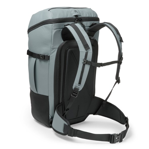 - Spacious main compartment is accessible from the top or through the large back opening, even with a rope mounted