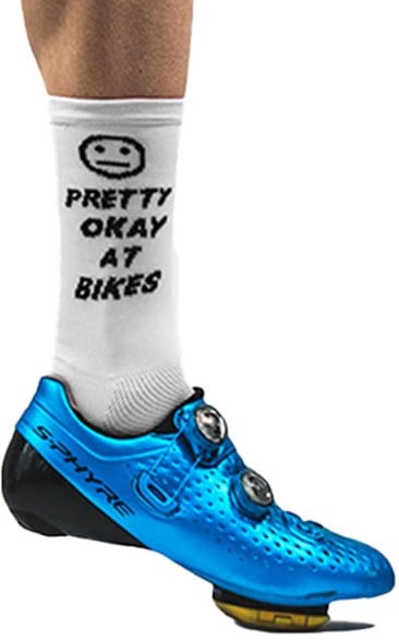 With their lightweight, moisture-wicking material, the Ostroy Pretty Okay At Bikes crew socks will ensure you're ready for any ride, whether you're spinning with friends or aiming for a podium finish.