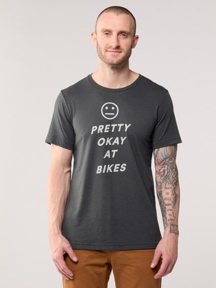 Not all days are for shredding. When you're craving off-the-bike adventure, reach for the supersoft Ostroy Pretty Okay At Bikes T-shirt and head out to hit the town or your neighbor's barbecue.