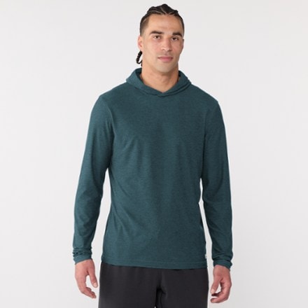If you are familiar with the Strato tech T from Vuori, this is the long sleeve thin hoodie version of it. It's incredibly soft, and fits great. I am 5'9" 165 lbs and the Medium is great. It's definitely more of a trim fit, so size up if you prefer a baggy fit. The interesting thing is that this seems to be an REI exclusive for now. Vuori does not sell this item on their website.