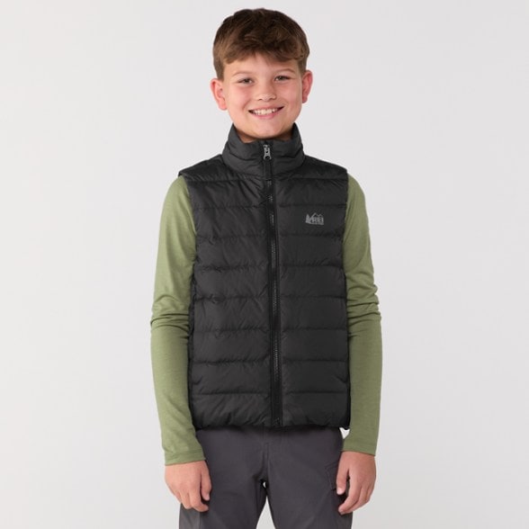 An all-season layer for all-season kids, the REI Co-op kids' 650 Down vest is toasty with recycled materials and a windproof shell to keep them warm during high-energy activities.