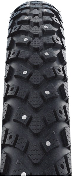 With spikes in the tread, reflective lines and K-Guard protection, the entry-level Schwalbe Winter Clincher wire-bead tire provides excellent control on glassy ice.