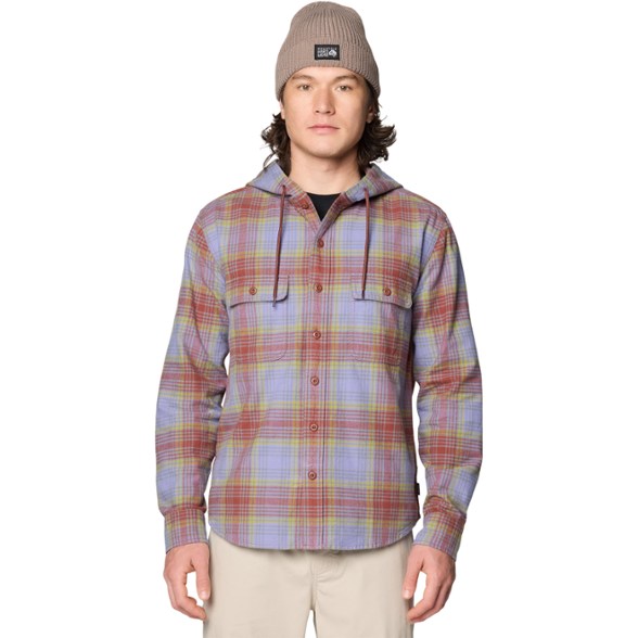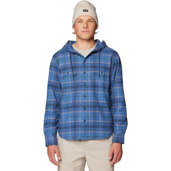 Designed for comfort at camp or around town, the men's Mountain Hardwear Dusk Creek Hooded long-sleeve shirt is made from lightweight, brushed cotton that is easy to wear indoors or outside.