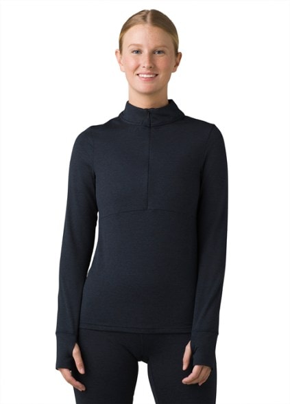 With a brushed interior and sleek, fitted silhouette, the women's prAna Ice Flow half-zip pullover helps keep your studio practice on track when the cold winter settles in.