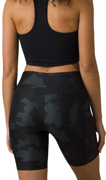 Ready for workouts and chill outs, the women's prAna Electa II Printed shorts offer fitted bike-short style, UPF 50+ sun protection, a wide waistband and a COOLMAX® gusset for complete comfort.