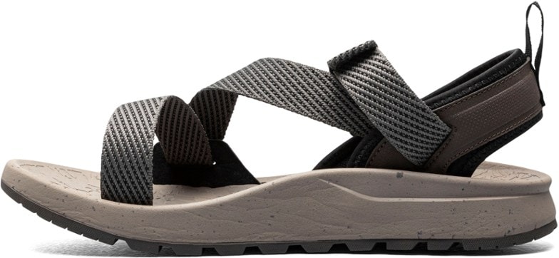- Recycled PET and recycled polyurethane uppers offer a 3-strap design with air-mesh heel pads for comfort and stability
