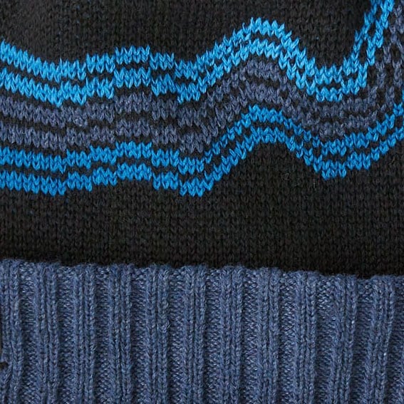 - 3 in. rib-knit cuff with pom-pom styling