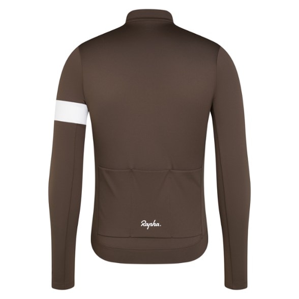 - Made of a thicker fabric than the Rapha Core cycling jersey with a fleecy, brushed interior