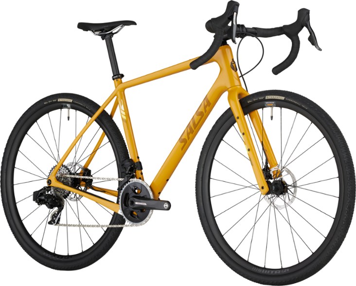 Sporting a carbon fiber frameset, carefully honed gravel race geometry and mounts for your water, tools and accessories, the Salsa Warbird C Force AXS Wide bike is made to perform on rough roads.