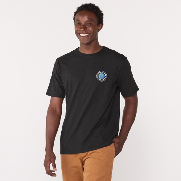 Small steps lead to epic new horizons. The men's Patagonia Unity Fitz Responsibili-Tee shirt is made using fabric scraps and recycled bottles to reduce reliance on virgin raw materials.