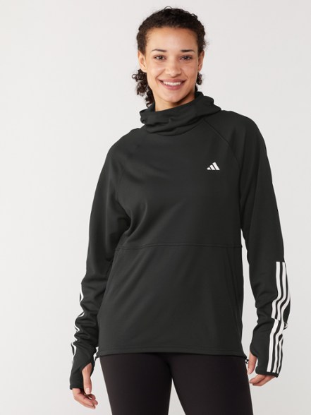 Brace for the cold in the women's adidas Own The Run Excite 3S hoodie. It helps keep you cozy and dry on your daily run thanks to its AEROREADY sweat-wicking materials.