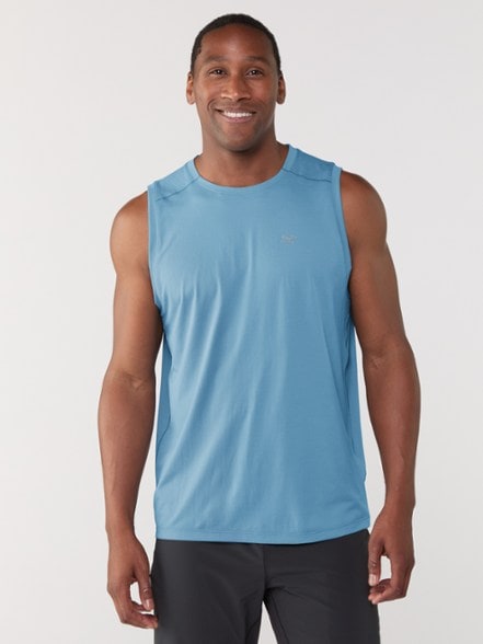 I love this tank. I have the tshirt version and this tank eliminates any issues I had with the fit of the tshirt. The tshirt had a little bit of a strange fit with the sleeves but once I tried on the tank it was perfect for me. Im typically a medium in all Arc’teryx prices but large was perfect for me in this tank.