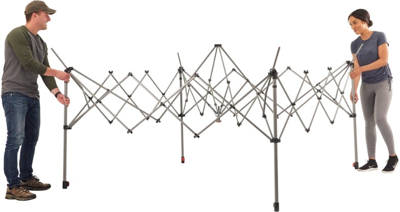 - Comfort Gripâ„¢ features pinch-free buttons that lock the poles in place for easy setup and takedown