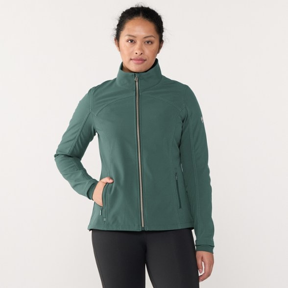 Built for a range of active pursuits, the women's KUHL Frost soft-shell jacket has a durable shell bonded to a microfleece backer for warmth and weather resistance in unpredictable conditions.