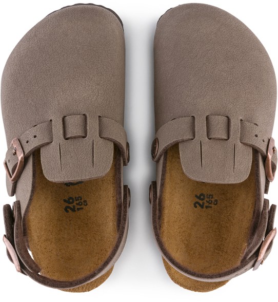Easy to slide on and go, the kids' Birkenstock Kay clogs have convertible back straps with buckle closures that can swivel back for a more secure fit and comfortable footbeds for all-day wear.