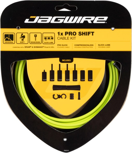 Designed for bikes with a single-chainring drivetrain, the Jagwire 1x Pro shift kit deliver enhanced shifting precision with a Pro Polished Slick Stainless cable and Slick-Lube housing liner.