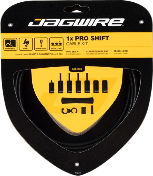 Designed for bikes with a single-chainring drivetrain, the Jagwire 1x Pro shift kit deliver enhanced shifting precision with a Pro Polished Slick Stainless cable and Slick-Lube housing liner.