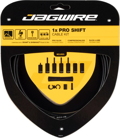 Designed for bikes with a single-chainring drivetrain, the Jagwire 1x Pro shift kit deliver enhanced shifting precision with a Pro Polished Slick Stainless cable and Slick-Lube housing liner.