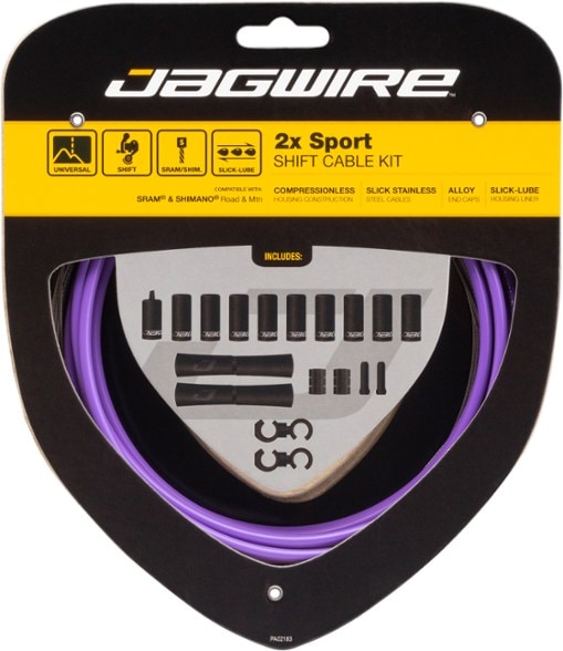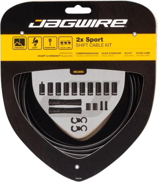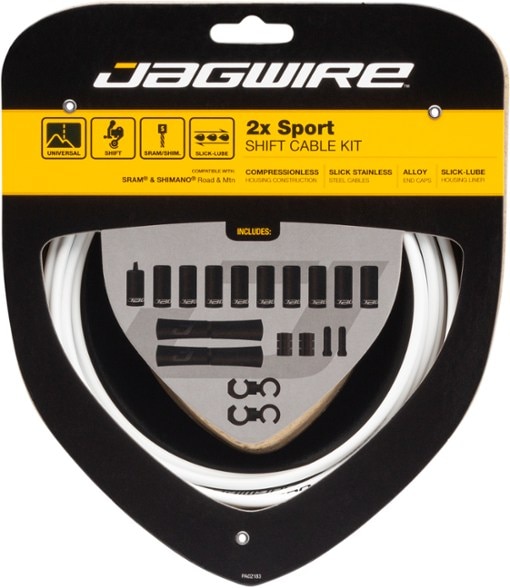 An aesthetic replacement for OE cables, the Jagwire 2x Sport shift cable kit features weld-cut, single-ended Slick Stainless cables that offer easy installation with modern SRAM and Shimano shifters.