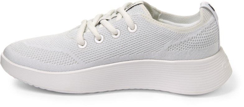 Overall, this is a great shoe! The footbed is comfy, the upper fits like a glove, and the tongue stays in place. I've been wearing them for dog walking, errands, etc. and they are easy to throw on with any outfit because they are so neutral. The only thing about them that I would change is I feel the heel cup is a little short. I would like it to come up a little higher as I have to tie the shoe kind of tight to ensure my heels stay in place. This is a not a dealbreaker, I will definitely keep wearing them! Just feedback for future versions :)